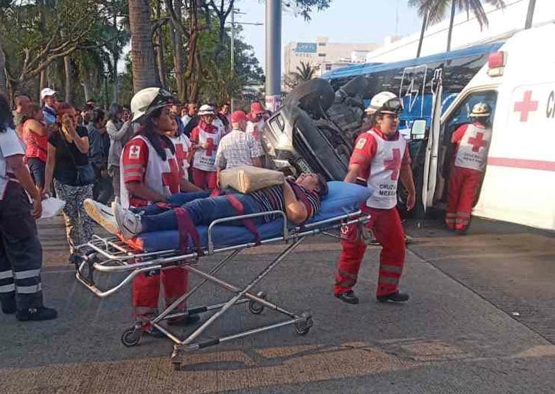 Un aparatoso accidente entre una ambulancia de la Cruz Roja y una camioneta particular dejó como saldo tres personas hospitalizadas y daños materiales de consideración en el cruce de la calle Orizaba y la avenida Salvador Díaz Mirón.