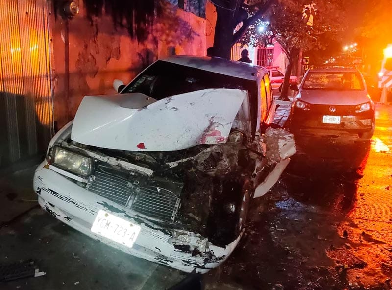 Ahí una camioneta marca Ford, tipo Ranger, de color negro, circulaba a exceso de velocidad e impactó a un automóvil compacto marca, Nissan, tipo Tsuru que estaba estacionado y, por el impacto, terminó volcada la camioneta parcialmente sobre la banqueta.
