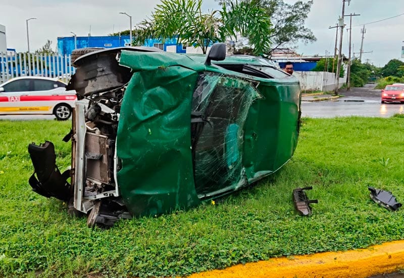 En el bulevar Fidel Velázquez, al norte de la ciudad de Veracruz, hubo una aparatosa volcadura frente a las instalaciones del Centro Integral de Justicia de la zona norte, dejando cuantiosos daños materiales, sin personas lesionadas de gravedad.