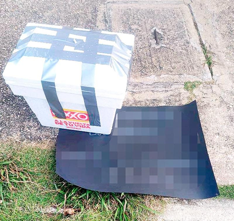 Minutos después de ese hallazgo de la hielera, policías localizaron una lona instalada en vía pública en la calle Monseñor Carlos Talavera, en la colonia El Tesoro, en Coatzacoalcos.