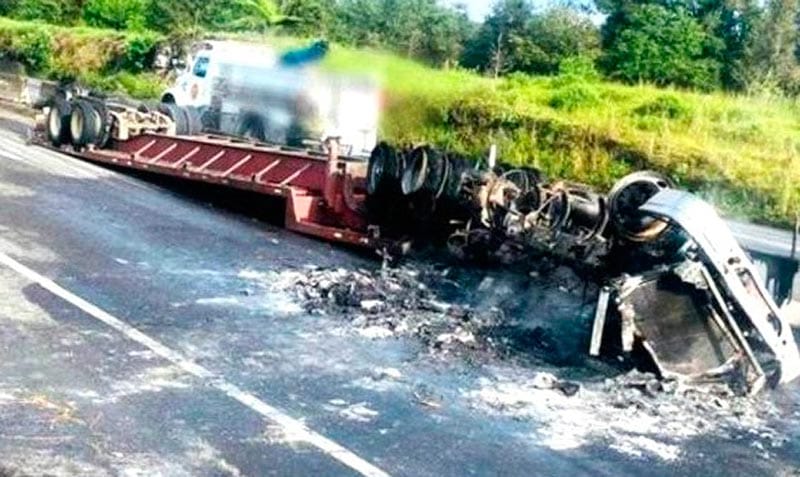 Operadores de línea de emergencias 911 reportaron la volcadura e incendio de un tráiler, a las 06:00 horas del lunes, en autopista Xalapa-Perote.
