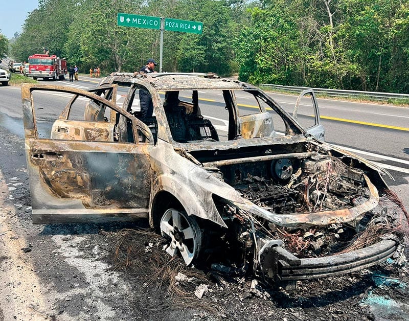 Al medio día del jueves, operadores de línea de emergencias 911 reportaron un automóvil en llamas sobre la autopista México-Tuxpan, precisamente a la altura de Zapotalillo.