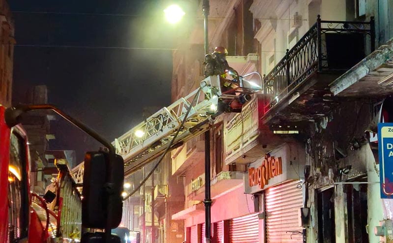 Los bomberos trabajaron desde el carro tipo escala para sofocar el fuego en la planta alta, y en la planta baja más miembros de fuerza llegaron para controlar la situación.