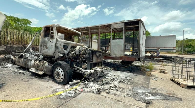 Integrantes del Comité Local de Ayuda Mutua (CLAM) explicaron que, tras una hora de maniobras intensas de combate al fuego, bomberos sofocaron el incendio, pero para ese momento ya los seis semirremolques estaban hechos chatarra.