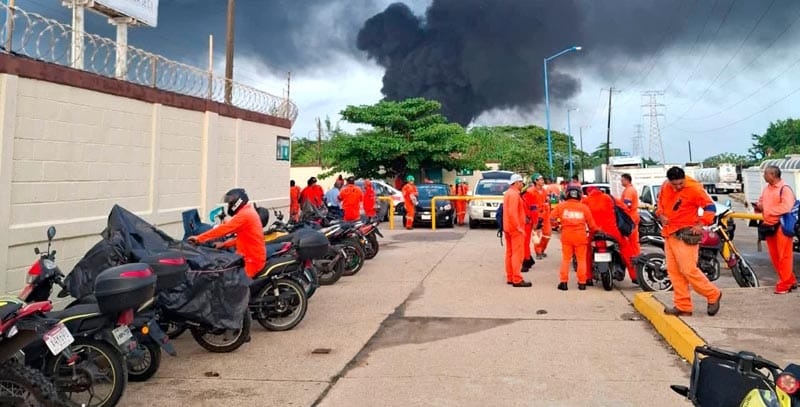 Mientras se desplazaban al punto Bomberos de Coatzacoalcos y el personal de Protección Civil, así como personal contraincendio de las empresas de la zona, observaron como la columna de humo se alzaba a unos 200 metros.