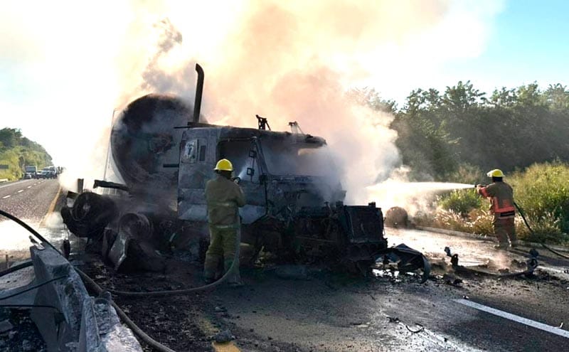 Un tractocamión cisterna cargado con diésel se incendió el sábado sobre el libramiento Plan del Río, autopista Xalapa-Veracruz, en Emiliano Zapata, sin reporte de víctimas.