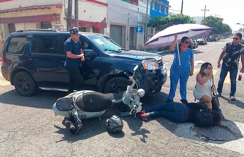 La motociclista resultó policontundida tras el impacto y fue atendida por paramédicos del Sector Salud, aunque su vida no corrió peligro.