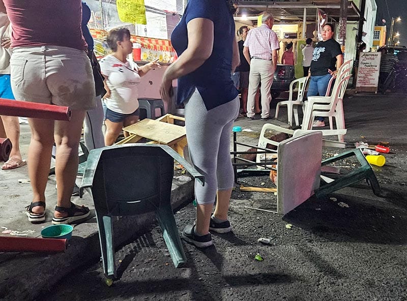 Ella encendió la unidad y en lugar de incorporarse a la avenida, se llevó un puesto de comida donde había algunos comensales, alcanzando a pegarle a cuatro de ellos.