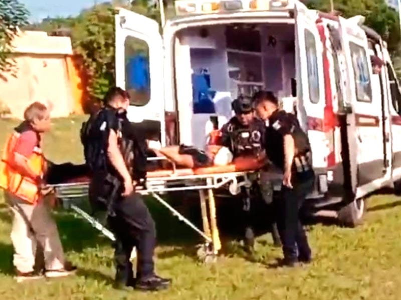 El policía lesionado fue subido a una ambulancia de PC, de Tres Valles, para ser llevado hasta un campo deportivo donde lo esperaba un helicóptero y, de inmediato, fue llevado a un hospital de Xalapa.