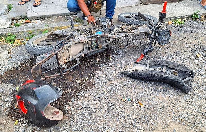 Los delincuentes aceleraron la moto, arrastrando a la mujer varios metros por la calle de terracería, hasta que finalmente perdieron el control, derraparon y huyeron a pie, dejando atrás la moto que se desarmó con el impacto.