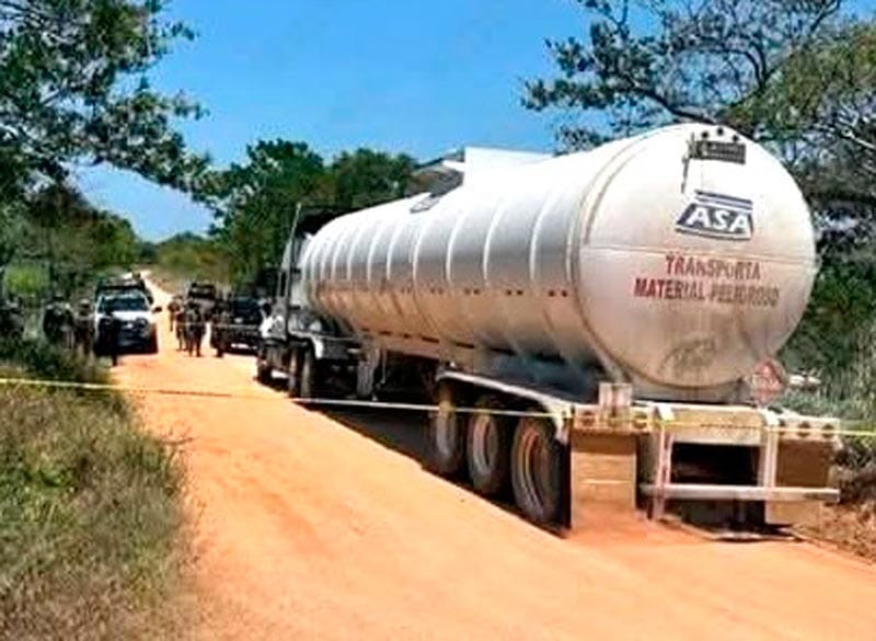 En el lugar, la SSP aseguró un tractocamión tipo pipa con casi cuatro mil litros de hidrocarburo sustraído de un ducto de Pemex, la unidad era marca Kenworth número 030 de AutotransportesRegios.
