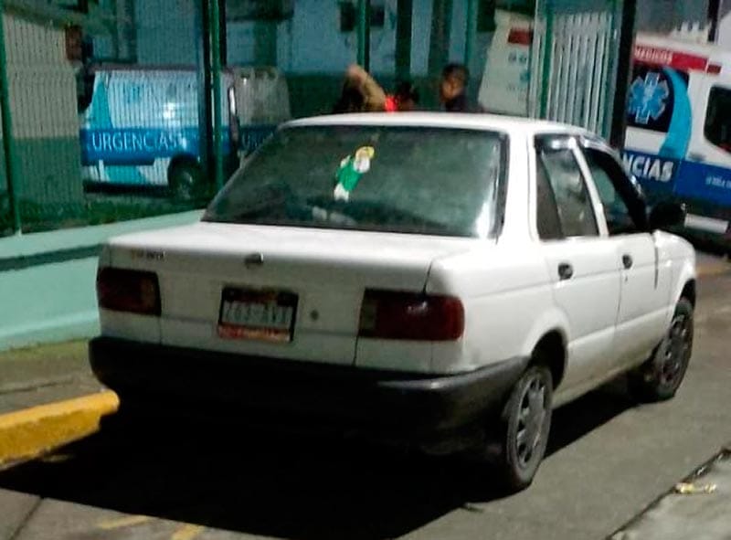 Gravemente lesionado, el agricultor fue trasladado a bordo de un vehículo Nissan Tsuru color blanco hasta las instalaciones de Protección Civil, allí en La Perla.