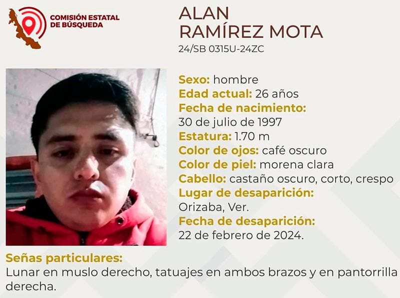 El finado respondía al nombre de Alan Ramírez Mota de 26 años de edad y con domicilio conocido en la Unidad Habitacional Valle Dorado del municipio de Ixhuatlancillo, el cual se encontraba reportado como desaparecido, desde el pasado jueves 22 de febrero del presente.