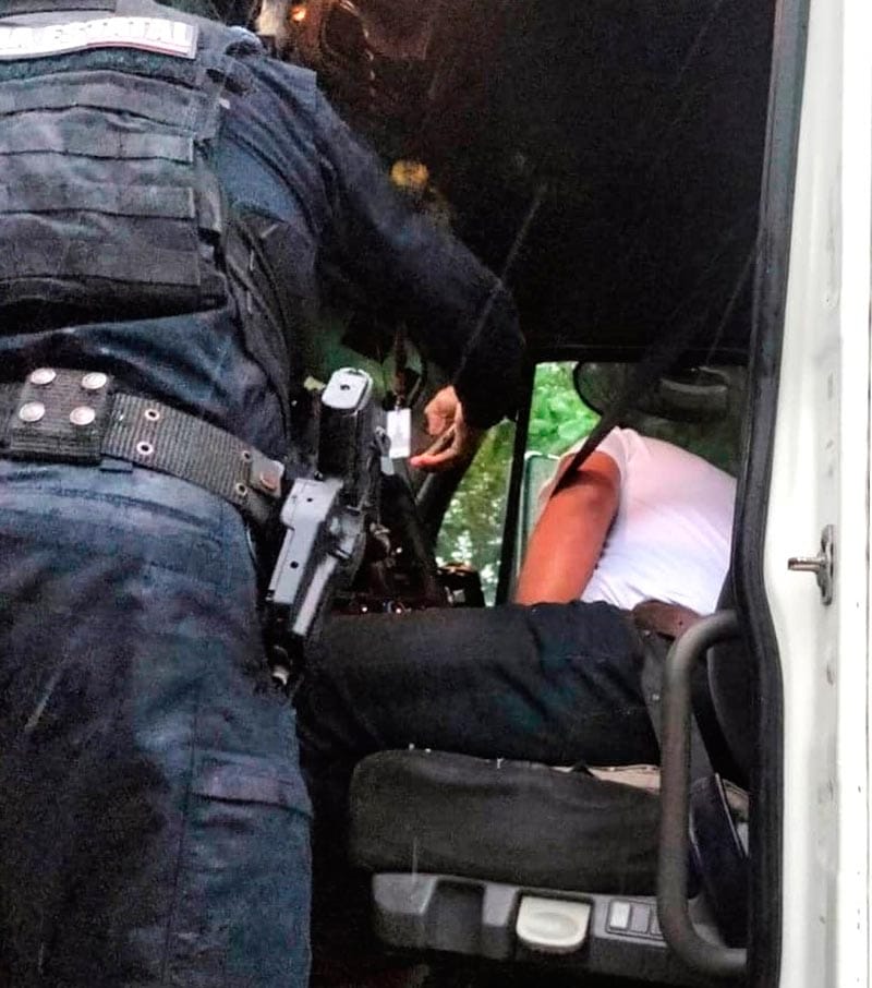 Oficiales constataron que, a bordo de un tractocamión razón social Logística Wendulínea número 26, el cual estaba obstruyendo la vialidad, se encontraba el cadáver de un hombre con un balazo en la cabeza.