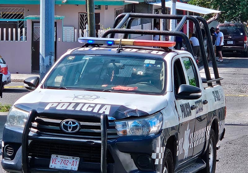 Lo anterior en las calles de Vendrell y Orizaba de la colonia Primero de Mayo en Veracruz, a donde estaba la patrulla oficial de la SSP, económico SSP-3020, con impactos de bala.