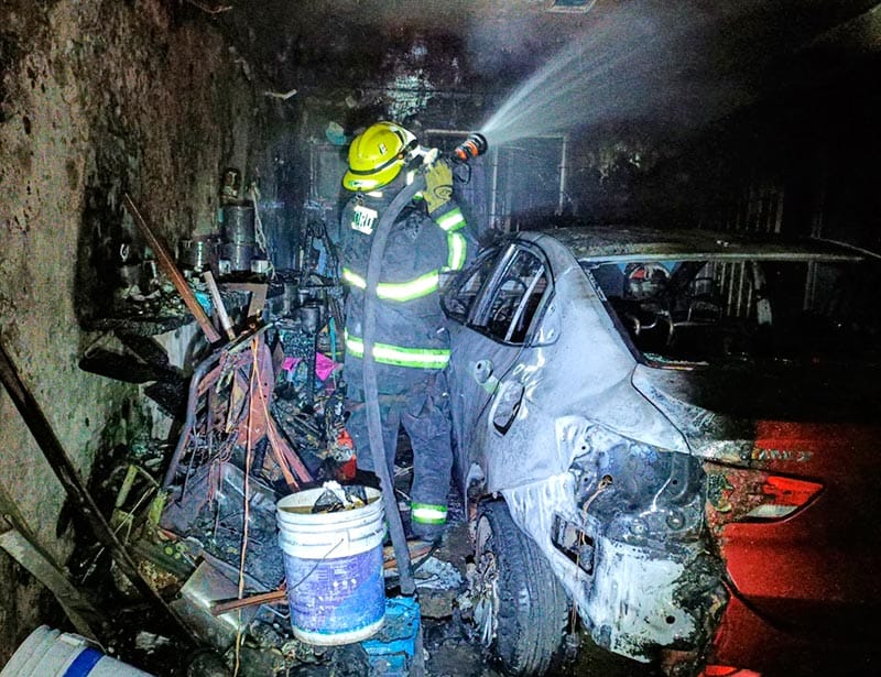El incendio se originó en un automóvil dentro de su garaje, movilizándose personal de Bomberos Municipales.