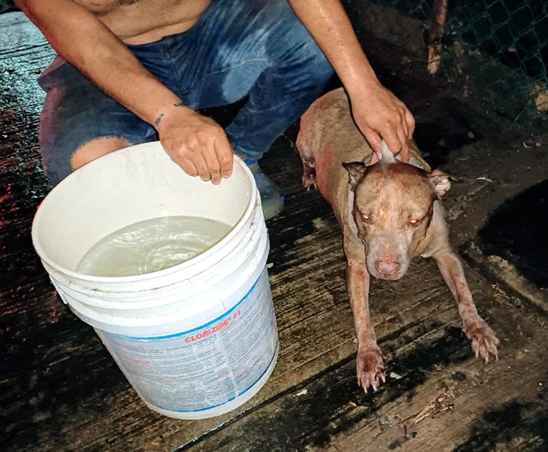 Los valientes vecinos tomaron al animalito para también resguardarlo y ponerlo sano y salvo.