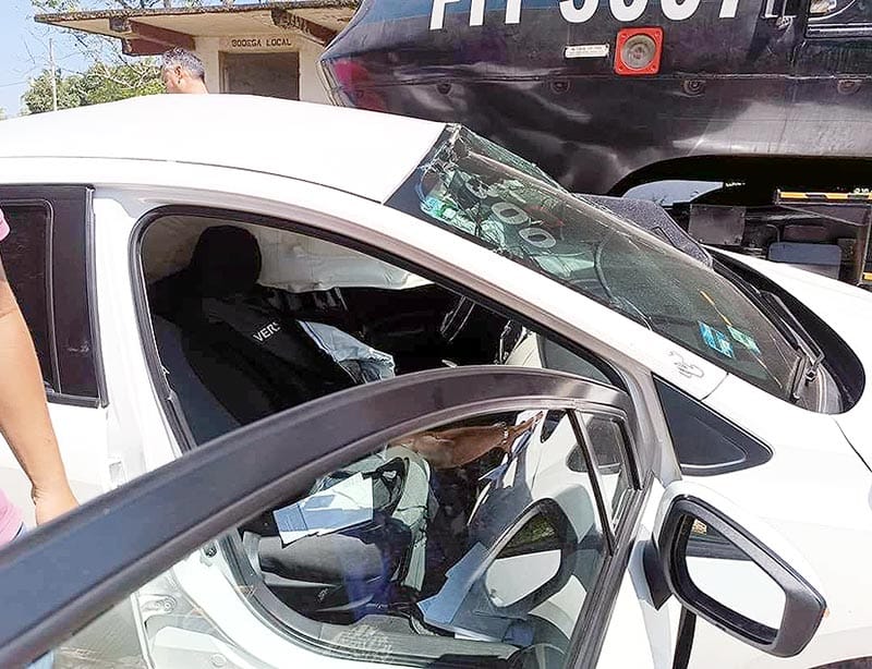 El tren con máquina 3007 de Ferrocarril del Istmo de Tehuantepec, en ruta de Salina Cruz a Coatzacoalcos había embestido a un automóvil Nissan Sentra, de color blanco, placas YCB-613-A de Veracruz, arrastrándolo 30 metros.