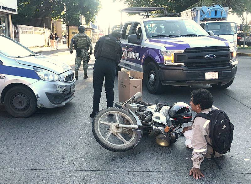 Un comerciante que circulaba en su motocicleta por la colonia Pascual Ortiz Rubio de Veracruz sufrió una pierna fracturada después de ser impactado por un automóvil particular el jueves por la tarde.
