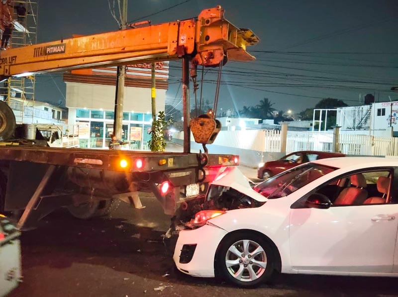 Al cruce con la calle de Jobo, una unidad tipo grúa se encontraba haciendo maniobras, y moviéndose en reversa, cuando el segundo vehículo colisionó con la parte trasera del vehículo pesado.