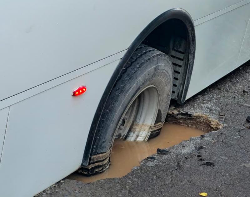 Un autobús de transporte de personal con número económico 7527 cayó en un socavón, formado en el fraccionamiento Hacienda La Parroquia, al sur poniente de la ciudad de Veracruz, este fin de semana, generando caos y daños materiales.