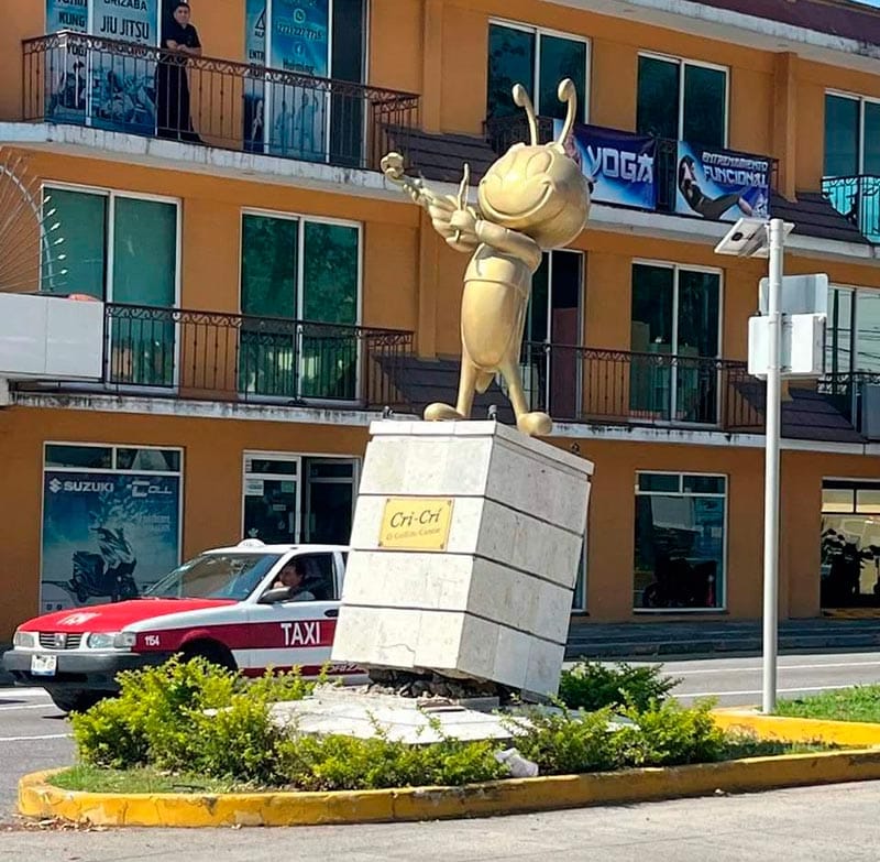 Orizaba, Ver.(AVC).- El choque frontal de un automóvil contra la base del monumento al grillito cantor "Cri Cri" ubicado sobre la Avenida del mismo nombre a la altura de la Colonia Adolfo López Mateos, dejó como saldo daños materiales mayores a los 30 mil pesos, así como una inmediata movilización de cuerpos policiales y de rescate.