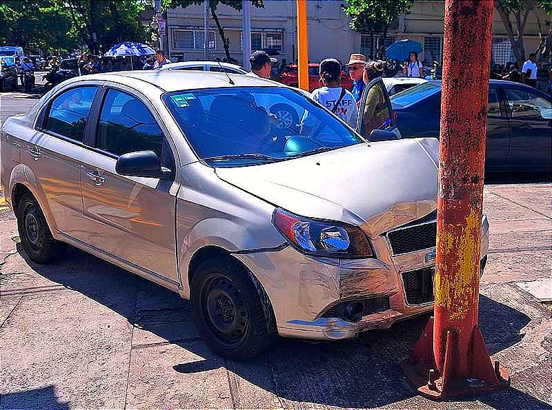 Por su parte, quien iba en el Aveo terminó por subir la banqueta e impactar contra otro poste.