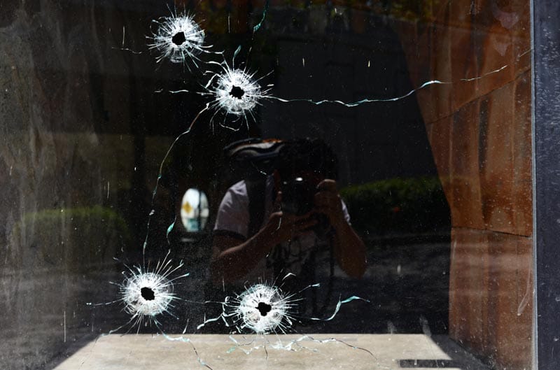 Patrulleros de la SSP se trasladaron de inmediato al lugar y constataron que en un ventanal de cristal había al menos tres orificios producidos por arma de fuego, sin que reportaran lesionados.