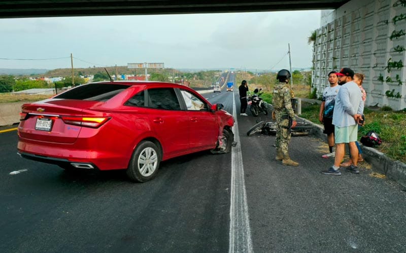 Un doble accidente se dio este fin de semana, entre un automóvil y una motocicleta en la autopista Veracruz–Cardel, a la altura del fraccionamiento Colinas de Santa Fe, al norte de la ciudad de Veracruz, generando la presencia de los cuerpos de emergencia.