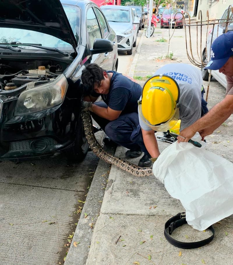 La serpiente fue identificada como una boa constrictor, la cual será trasladada al zoológico de Miguel Ángel de Quevedo, donde se evaluará su estado de salud antes de ser liberada en un entorno adecuado y seguro.