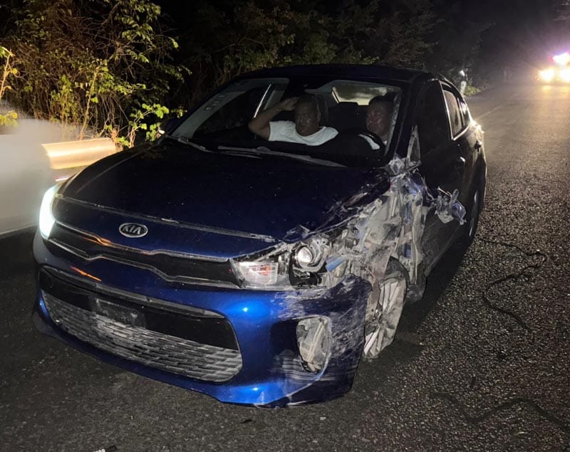 Gómez conducía un automóvil Kia color azul, acompañado por otros dos oficiales que también andaban ebrios, cuando perdió el control y chocó con una camioneta Ford Ranger color rojo, donde viajaba una familia.