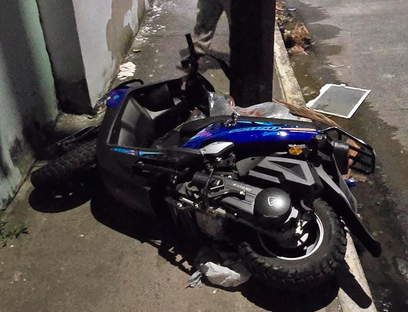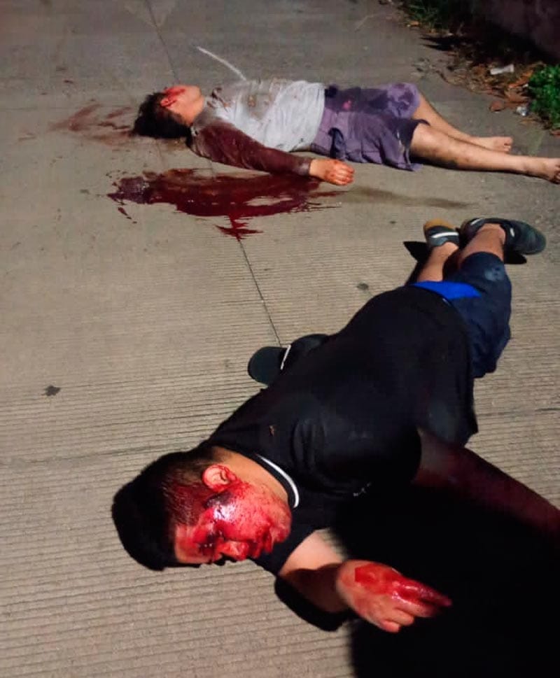 La motocicleta Italika, tipo WS150 acabó contra un poste, mientras los dos tripulantes quedaron tendidos sobre la calle en un charco de sangre.