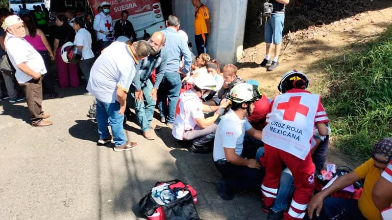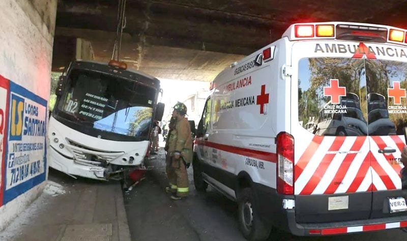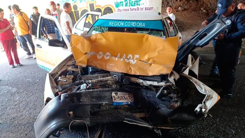 Al menos 17 personas resultaron lesionadas en un brutal accidente que se registró el domingo sobre carretera tranca de tubos, precisamente en un bajo puente, en Córdoba, donde el taxi Nissan CO-1185 chocó de frente contra un autobús de la línea 8 de Marzo.