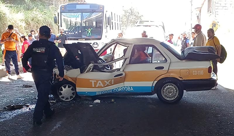 Al medio día del domingo, el autobús de la línea 8 de Marzo, que cubría la ruta Pueblito-Centro chocó de frente contra el taxi Nissan Tsuru número CO-1185 de Córdoba, sobre el tramo carretero Córdoba-Naranjal.