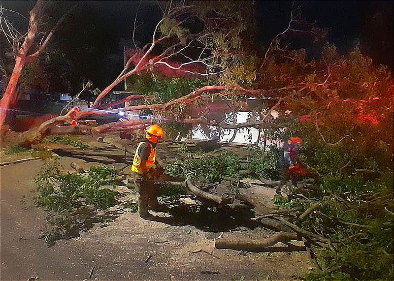 Con el uso de motosierras y machetes, llevaron a cabo las tareas de corte y remoción de las ramas y el gran tronco.