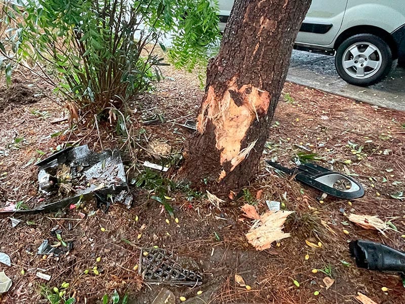 En el fraccionamiento Lagos de Puente Moreno, en el municipio de Medellín de Bravo, hubo un fuerte accidente de un automóvil marca Dodge, cuyo operador perdió el control por un bache, y se proyectó contra un árbol.