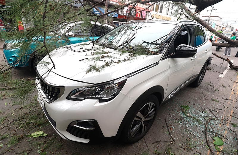 Sin embargo, un árbol acabó encima de ellos, llevándose la peor parte automóvil de la marca Volkswagen el que resultó con mayores afectaciones.