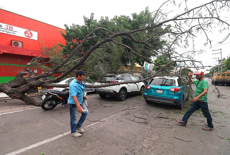 En céntricas calles de la ciudad de Veracruz, un árbol cayó sobre cuatro automóviles cuando sus conductores esperaban el cambio del semáforo, provocando la presencia de los cuerpos de emergencia y de Protección Civil.