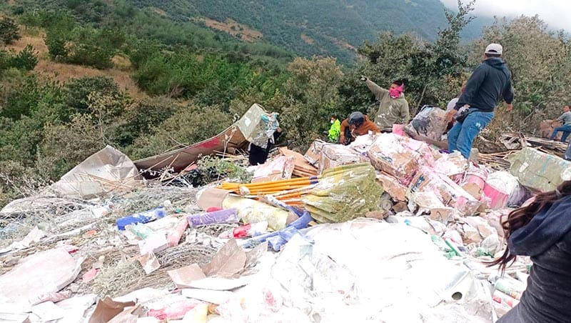 Recorrió toda la rampa de emergencia y finalmente cayó a un barranco de 100 metros de profundidad, quedando partes del tractocamión y de la carga, consistente en productos de limpieza y botes con pintura, en una ladera.