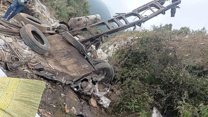 *El tractocamión se fue en picada 100 metros de profundidad quedando destrozado, muriendo el operador y su ayudante
