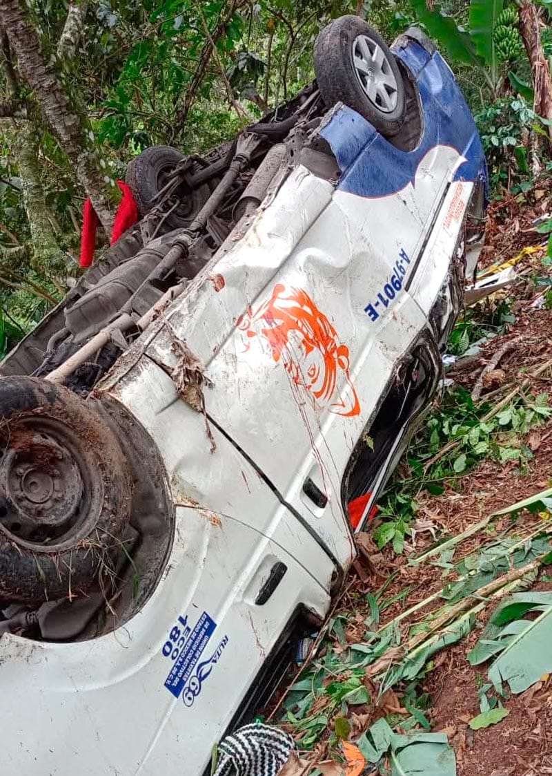 Al salir del camino, la Van cayó a un barranco dando volteretas y quedó a unos 50 metros de profundidad, en una zona de platanales, resultando heridos diez de los pasajeros.