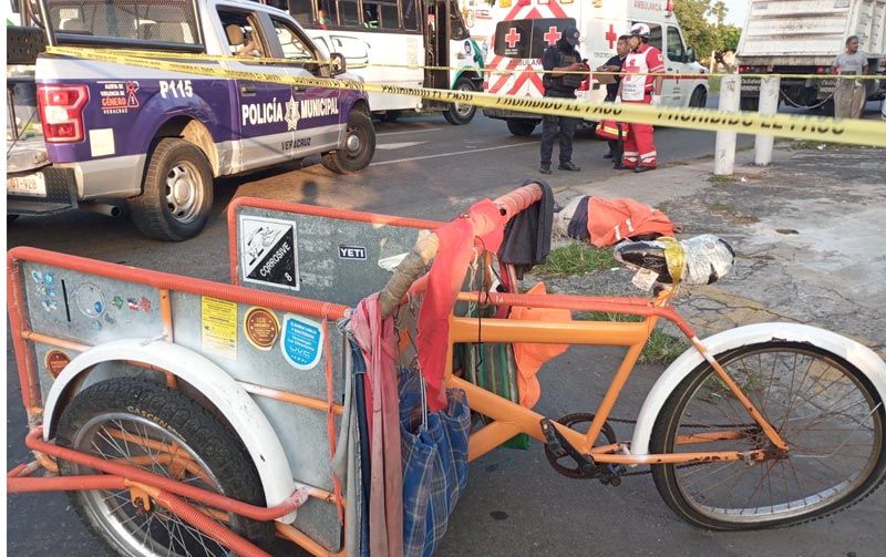 En céntricas calles de la ciudad de Veracruz, un camión del servicio urbano, de la ruta El Oasis arrolló a un empleado de limpia pública, quien perdió la vida en el sitio y quedó junto a su triciclo, movilizándose personal de emergencia, policías, y de la FGE.