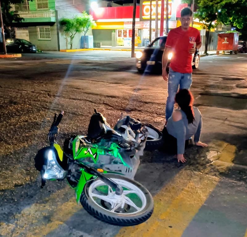 Esto provocó que César Daniel O. F., a bordo de una motocicleta, de la marca Italika, se impactara contra su puerta derecha, cayendo junto a su pareja, Karina A. T.