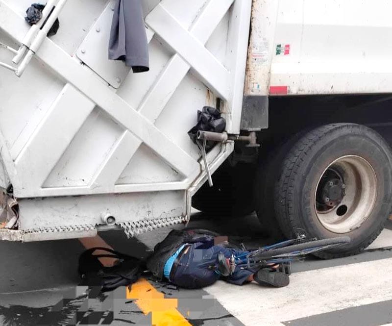 Un ciclista murió al ser arrollado por un camión de Limpia Pública del Ayuntamiento de Orizaba, el trágico accidente ocurrió junto al mercado Melchor Ocampo, en Orizaba.