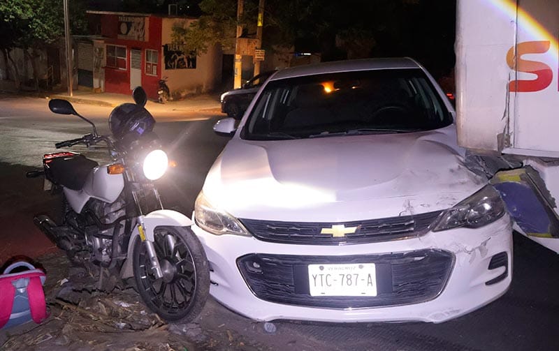 El camión se fue hacia atrás, pues al operador no le respondieron los frenos, golpeando a un automóvil, marca Chevrolet, tipo Cavalier y una motocicleta, de la marca Yamaha, en donde iba un hombre y su menor hija de unos 12 años de edad.