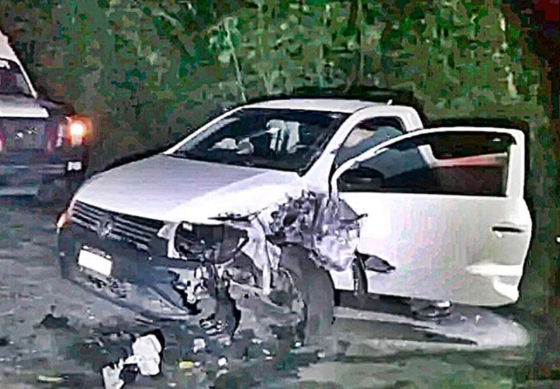 Luego del encontronazo, arrastró a la camioneta Volkswagen, tipo Saveiro, color blanco, con placas del estado, que dejó desbaratada del costado izquierdo delantero, y con las llantas desprendidas.