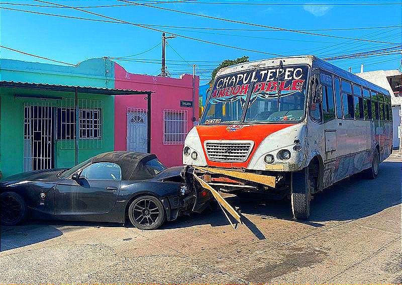 A la altura de la colonia Pascual Ortiz Rubio, en la ciudad de Veracruz, hubo un accidente entre un camión urbano y un automóvil, marca BMW, dejando daños materiales cuantiosos.