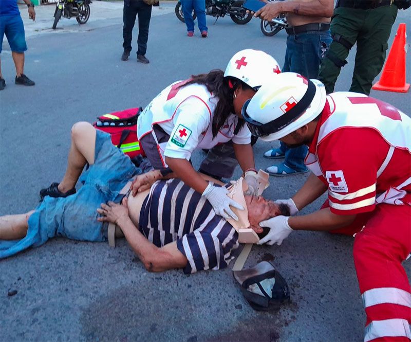 Finalmente, los paramédicos de la Cruz Roja llegaron al sitio para brindar los primeros auxilios al probe señor, quien sufrió fracturas evidentes, un corte en la cabeza y abrasiones principalmente en la espalda como consecuencia del atropello.