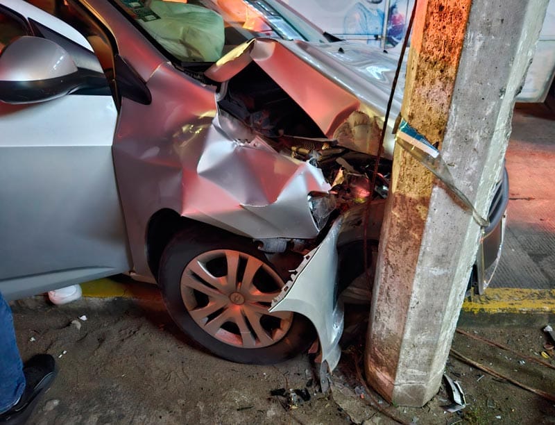 Por el golpe, lo proyectó contra un poste, activándose las bolsas de aire en la cabina del automóvil, sacando la peor parte la copiloto del automóvil particular.