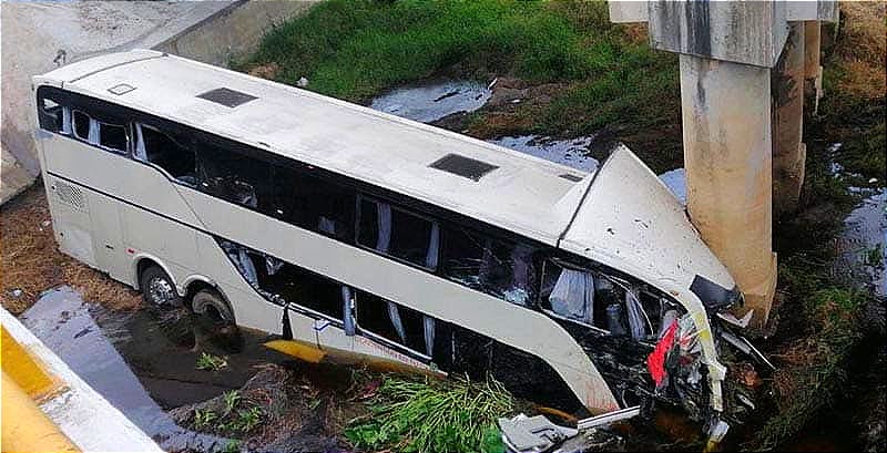 Un autobús de turismo se accidentó sobre la autopista Isla-Cosamaloapan, kilómetro 99+600, impactándose contra una columna de concreto, el accidente que ocurrió la madrugada del martes de saldo de 12 muertos y 30 lesionados.